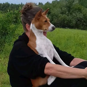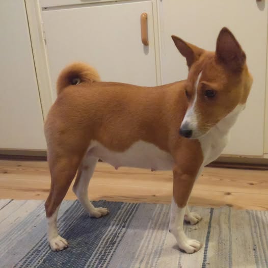 Coco, 2-årig röd/vit basenjitik söker nytt hem!
